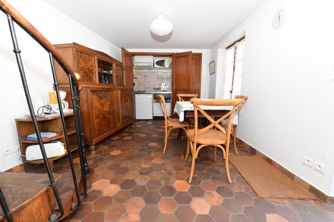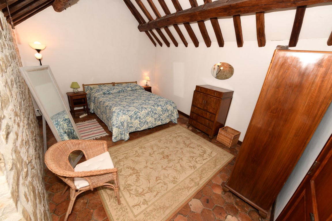 The Mews suite, a few meters across the yard from the Chateau, harbors a duplex apartment. It provides a master bedroom, a living room (or second bedroom), a study (or infant bedroom), a dining room with a kitchenette (with a dishwasher), a shower room and a storage. The Mews house shares with the Landlords residing in the Chateau the front yard, the garden and the laundry. It is perfect for a couple