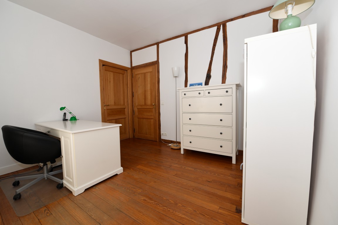 The Bordeaux Suite (23m2) is located on the 1st floor, facing (South) the front yard. Each of its 3 rooms has a window to the outside.