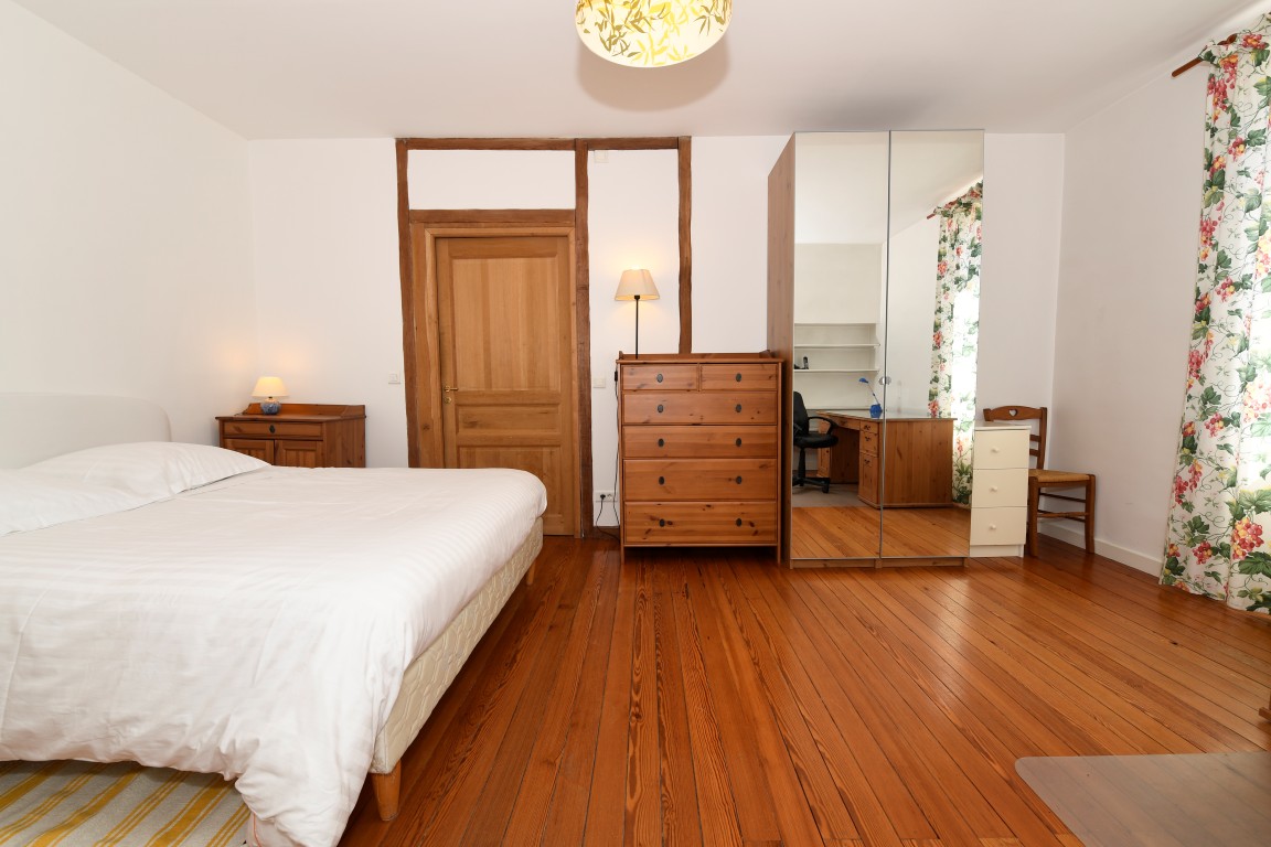 The Loire Corner Suite is located on the first floor in the southwest corner of the house. It has two windows, one facing the front yard (South) and the other the street (West). It is very bright.
